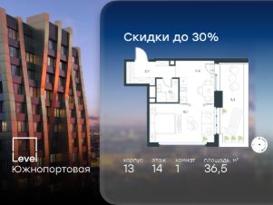 В северной части района Печатники продается 1-комнатный апартамент площадью 36.50 кв.м без отделки. Апартаменты расположены на 14 этаже 23-этажного корпуса 13 в жилом комплексе комфорт-класса Level Южнопортовая (компания Level Group/Левел групп).