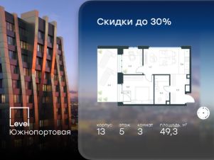В северной части района Печатники продается 3-комнатный апартамент площадью 49.30 кв.м без отделки. Апартаменты расположены на 5 этаже 23-этажного корпуса 13 в жилом комплексе комфорт-класса Level Южнопортовая (компания Level Group/Левел групп).
