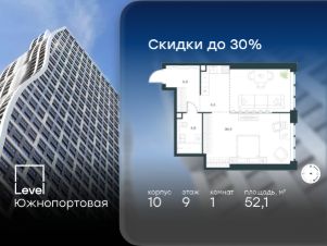 В северной части района Печатники продается 1-комнатная квартира площадью 52.10 кв.м без отделки. Квартира расположена на 9 этаже 68-этажного корпуса 10 в жилом комплексе комфорт-класса Level Южнопортовая (компания Level Group/Левел групп).