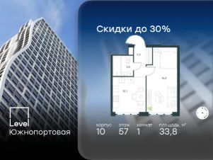 В северной части района Печатники продается 1-комнатная квартира площадью 33.80 кв.м без отделки. Квартира расположена на 57 этаже 68-этажного корпуса 10 в жилом комплексе комфорт-класса Level Южнопортовая (компания Level Group/Левел групп).