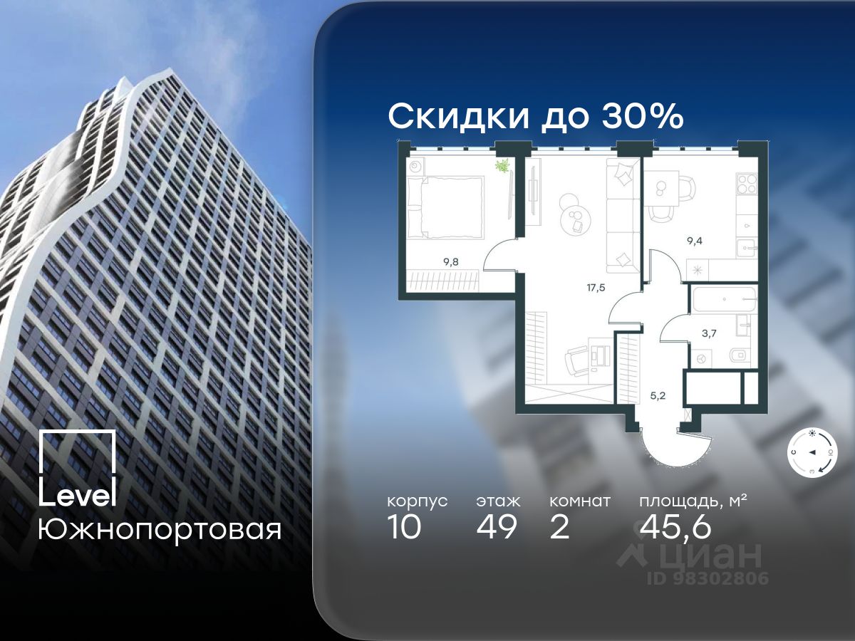 В северной части района Печатники продается 2-комнатная квартира площадью 45.60 кв.м без отделки. Квартира расположена на 49 этаже 68-этажного корпуса 10 в жилом комплексе комфорт-класса Level Южнопортовая (компания Level Group/Левел групп).