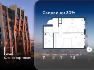 В северной части района Печатники продается 1-комнатная квартира площадью 43.00 кв.м без отделки. Квартира расположена на 5 этаже 16-этажного корпуса 11 в жилом комплексе комфорт-класса Level Южнопортовая (компания Level Group/Левел групп).