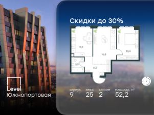 В северной части района Печатники продается 2-комнатная квартира площадью 52.20 кв.м с отделкой white box. Квартира расположена на 25 этаже 49-этажного корпуса 9 в жилом комплексе комфорт-класса Level Южнопортовая (компания Level Group/Левел групп).