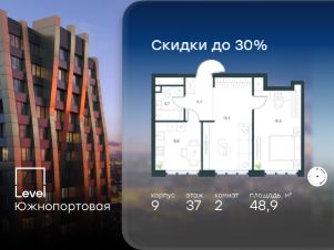 В северной части района Печатники продается 2-комнатная квартира площадью 48.90 кв.м с отделкой white box. Квартира расположена на 37 этаже 49-этажного корпуса 9 в жилом комплексе комфорт-класса Level Южнопортовая (компания Level Group/Левел групп).
