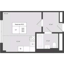Продается студия площадью 25 кв.м. на 4-м этаже