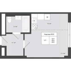 Продается студия площадью 25.2 кв.м. на 4-м этаже