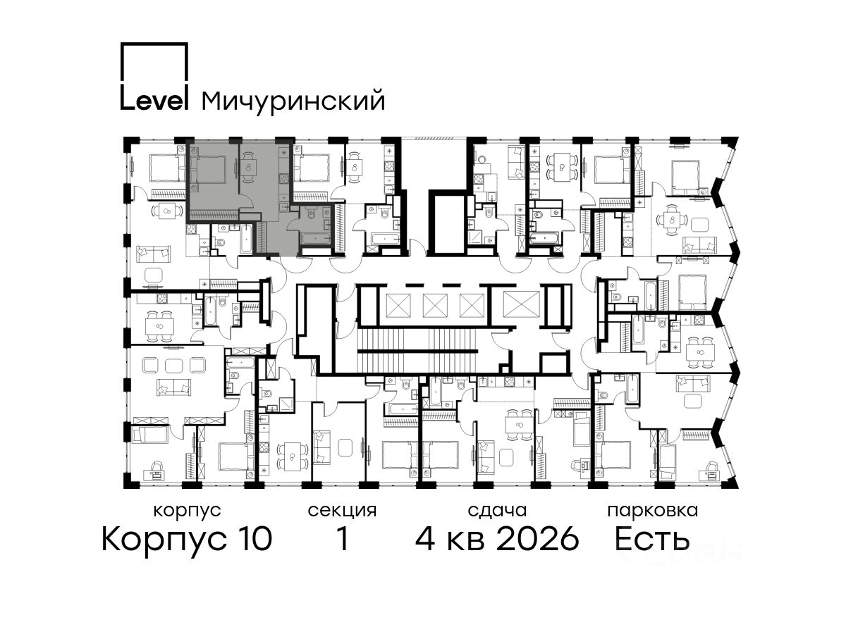 В жилом квартале, расположенном на границе с природным заказником "Долина реки Очаковки", продаётся 1-комнатная квартира площадью 33.90 кв.м с отделкой white box. Квартира расположена на 22 этаже 42-этажного корпуса 10 в жилом комплексе бизнес-класса Level Мичуринский (компания Level Group/Левел групп).