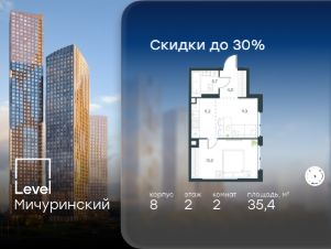 В жилом квартале, расположенном на границе с природным заказником "Долина реки Очаковки", продаётся 2-комнатная квартира площадью 35.40 кв.м без отделки. Квартира расположена на 2 этаже 48-этажного корпуса 8 в жилом комплексе бизнес-класса Level Мичуринский (компания Level Group/Левел групп).