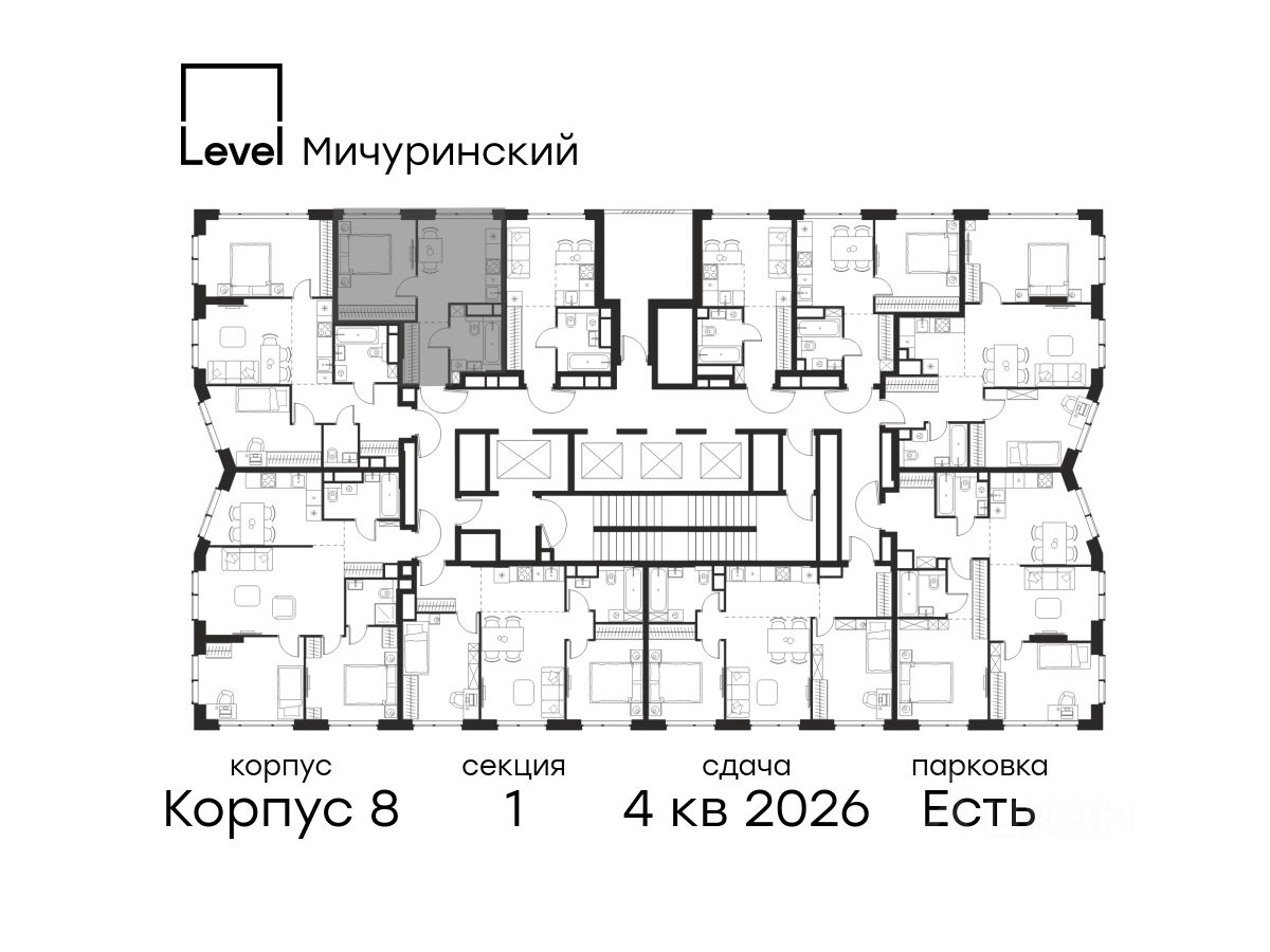 В жилом квартале, расположенном на границе с природным заказником "Долина реки Очаковки", продаётся 1-комнатная квартира площадью 33.50 кв.м без отделки. Квартира расположена на 19 этаже 48-этажного корпуса 8 в жилом комплексе бизнес-класса Level Мичуринский (компания Level Group/Левел групп).