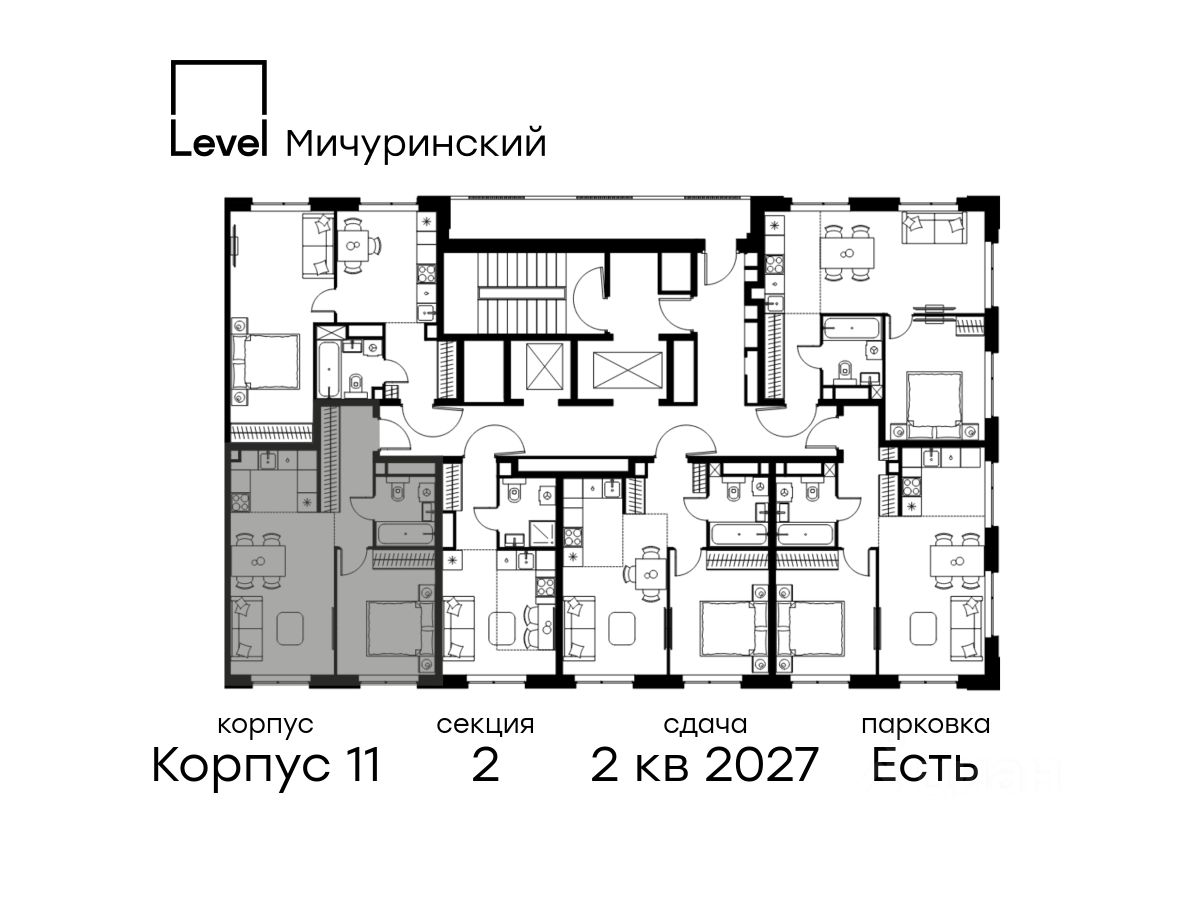 В жилом квартале, расположенном на границе с природным заказником "Долина реки Очаковки", продаётся 2-комнатная квартира площадью 43.20 кв.м без отделки. Квартира расположена на 15 этаже 24-этажного корпуса 11 в жилом комплексе бизнес-класса Level Мичуринский (компания Level Group/Левел групп).