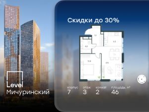 В жилом квартале, расположенном на границе с природным заказником "Долина реки Очаковки", продаётся 2-комнатная квартира площадью 46.00 кв.м без отделки. Квартира расположена на 3 этаже 24-этажного корпуса 7 в жилом комплексе бизнес-класса Level Мичуринский (компания Level Group/Левел групп).