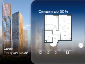 В жилом квартале, расположенном на границе с природным заказником "Долина реки Очаковки", продаётся 2-комнатная квартира площадью 41.10 кв.м без отделки. Квартира расположена на 2 этаже 11-этажного корпуса 12 в жилом комплексе бизнес-класса Level Мичуринский (компания Level Group/Левел групп).
