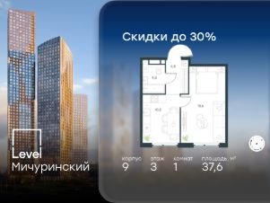 В жилом квартале, расположенном на границе с природным заказником "Долина реки Очаковки", продаётся 1-комнатная квартира площадью 37.60 кв.м без отделки. Квартира расположена на 3 этаже 12-этажного корпуса 9 в жилом комплексе бизнес-класса Level Мичуринский (компания Level Group/Левел групп).