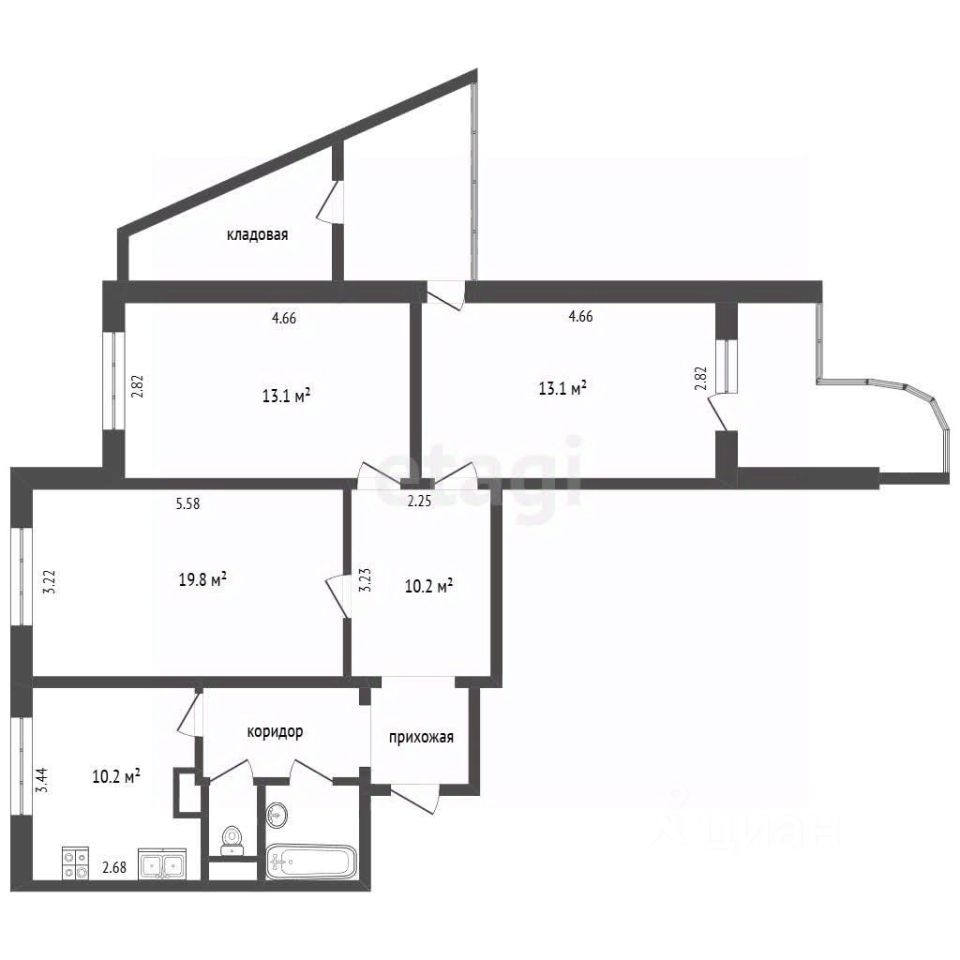 Объект отличается рациональной и светлой планировкой: две изолированные спальни, большая гостиная, а также три дополнительных пространства — две лоджии и балкон, что создает возможности для организации кабинета, зоны отдыха или хранения.