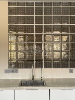 Отдельное внимание — деталям: стеклоблоки добавляют свет и визуальную лёгкость пространству, а дизайнерские светильники подчёркивают характер интерьера.