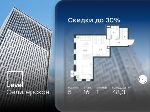 В жилом квартале, расположенном в южной части района Западное Дегунино, продаётся 1-комнатная квартира площадью 48.30 кв.м без отделки. Квартира расположена на 16 этаже 40-этажного корпуса 5 в жилом комплексе комфорт-класса Level Селигерская (компания Level Group/Левел групп).