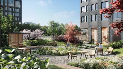 Внутренние дворы жилого комплекса огорожены от машин, а их функциональное наполнение отличается в зависимости от очереди строительства. На территории 1-й очереди будут: детская площадка, воркаут-зона, места для тихого отдыха и активных игр, а также сенсорный сад и большой луг. Во 2-й очереди жителей ждут уютные навесы с качелями, павильон-читальня, волейбольная площадка, беседки, а также детские и спортивные площадки.