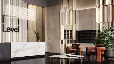 - Стильные дизайнерские лобби с высокими потолками до 4,9 м и окнами в пол, для питомцев предусмотрена лапомойка;