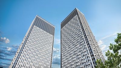 - Стильные дизайнерские лобби с высокими потолками до 4,9 м и окнами в пол, для питомцев предусмотрена лапомойка;