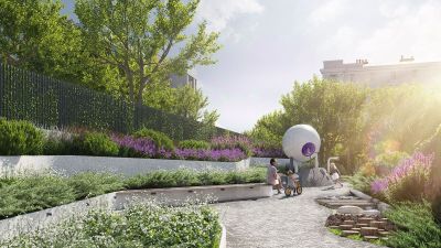 - закрытый двор с детской площадкой, сенсорным садом для детей и местом для тихого отдыха взрослых.
