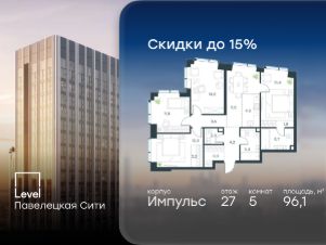 В Даниловском районе столицы (ЮАО) продаётся многокомнатная квартира площадью 96.10 кв.м без отделки. Квартира расположена на 27 этаже 45-этажного корпуса 'Горизонт' в жилом комплексе бизнес-класса Level Павелецкая Сити. Высота потолков 3.00м.