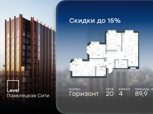 В Даниловском районе столицы (ЮАО) продаётся 4-комнатная квартира площадью 89.90 кв.м без отделки. Квартира расположена на 20 этаже 20-этажного корпуса 'Горизонт' в жилом комплексе бизнес-класса Level Павелецкая Сити. Высота потолков 3.60м.