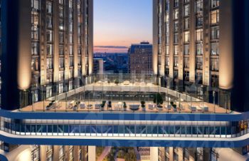 О комплексе: "Событие-4" - единственный в столице жилой небоскреб с личным парком на высоте 170 м, "парящими" в небе мостами с коворкингом и беговыми дорожками, а также персональными панорамами города.