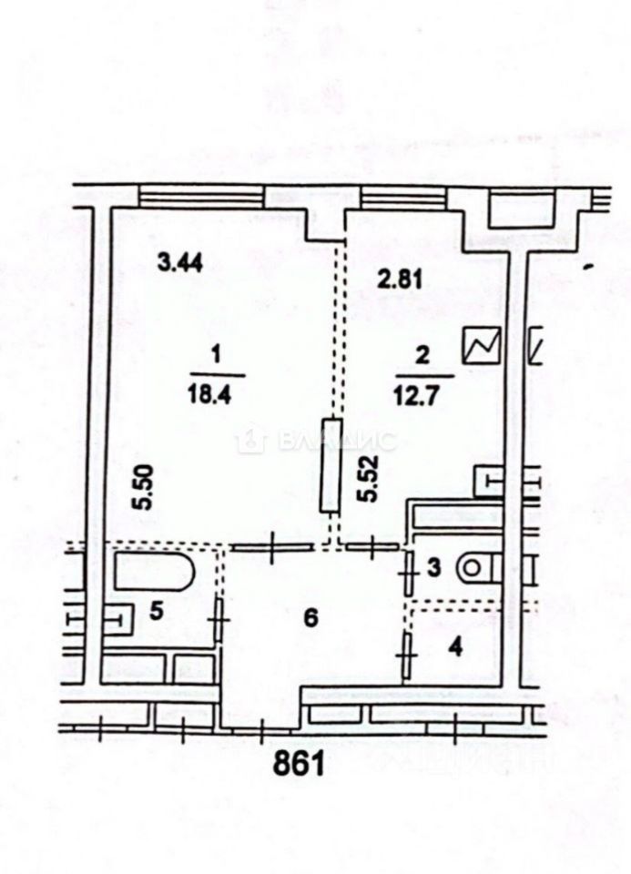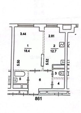 Общая площадь квартиры составляет 44 кв. м, из которых 30 кв. м — жилая площадь, 11 кв. м — кухня.