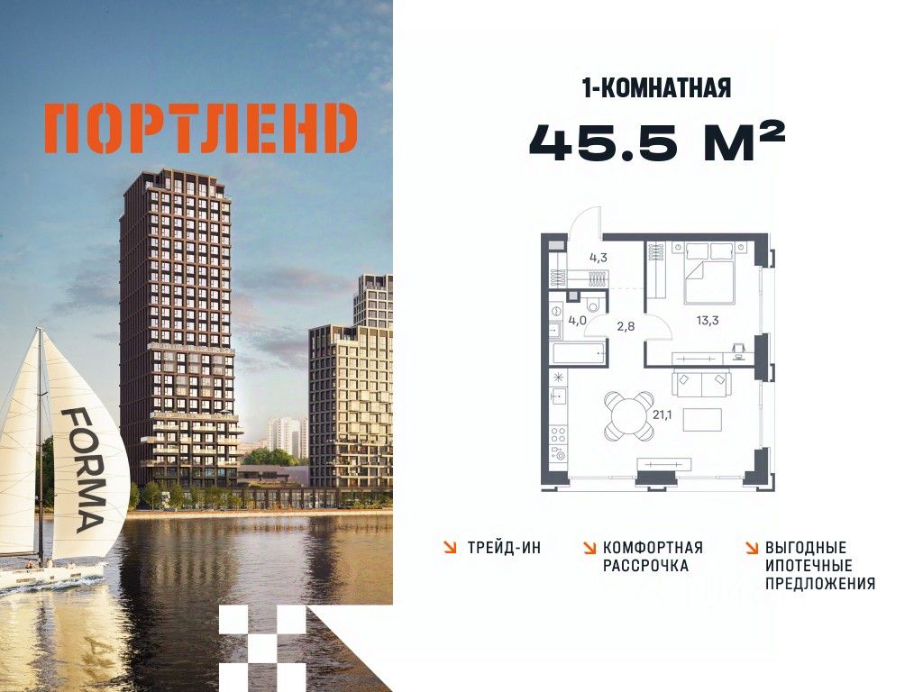 Цены указаны с условием 100% оплаты и стандартной ипотеки. Продаётся 1-к. квартира, 20 этаж в жилом комплексе бизнес-класса ПОРТЛЕНД от девелопера FORMA. ЖК расположен на берегу Москвы-реки в северной части района Печатники в акватории Южного речного порта. Основные преимущества проекта: • Самая протяженная береговая линия реки в Москве 13 км. • Вид на реку в сторону запада панорамные окна на самое широкое водное пространство Москва-реки (900 м) и на закат. • 95% квартир с видом на воду. • К ПОРТЛЕНД не примыкает крупных автомагистралей - отсутствие фонового шума дорог. • В перспективе ближайших 11 лет на территории района запланировано грандиозное преобразование и комплексное развитие. • Собственная набережная длиной 412 м., которая после завершения строительства сомкнется с эко-парком Печатники. • Прямой выход к воде и отсутствие проезжей части между ПОРТЛЕНД и береговой линией. • Инфраструктурное разнообразие: супермаркеты, крупные торговые центры, рестораны, кафе, фитнес-клубы, бьюти-салоны, компании сферы услуг и многое другое. • Собственная школа на 300 мест и детский сад на 275 мест. • Паркинг на 650 м/м • Транспортная вседоступность: метро, авто, велосипед, речной трамвай, канатная дорога • 15 мин. пешком до м. Печатники, 15 мин. на авто до ТТК, 20 минут на авто до Садового кольца