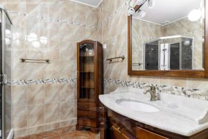 Планировка: гостиная с камином, кухня, две спальни, жилая комната (можно использовать как спальню или кабинет), гардеробная, два совмещенных санузла с ванной и душевой кабиной, гостевой санузел, постирочная, прихожая. Потолки 3м. Квартира меблирована и укомплектована всей необходимой бытовой техникой. Выполнен качественный ремонт в классическом стиле.