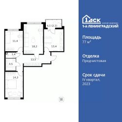 Продаётся 3-к квартира номер 248 общей площадью 77.8 кв.м. на 14-м этаже 14 этажного здания. Отделка Whitebox. Цена с учётом скидки.