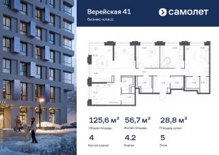 Строим кварталы для жизни с заботой о будущем. Предлагается 4-комнатная квартира бизнес-класса 125,55 кв.м в корпусе 4.2 на 5 этаже, в "Верейская 41"