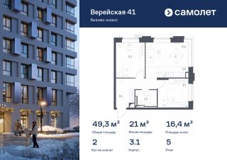 Строим кварталы для жизни с заботой о будущем. Предлагается 2-комнатная квартира бизнес-класса 49,28 кв.м в корпусе 3.1 на 5 этаже, в "Верейская 41"