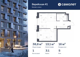 Строим кварталы для жизни с заботой о будущем. Предлагается 1-комнатная квартира бизнес-класса 38,76 кв.м в корпусе 3.1 на 5 этаже, в "Верейская 41"