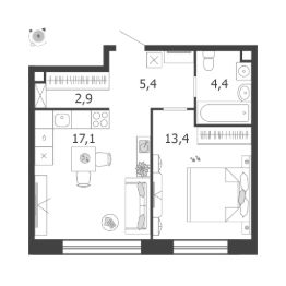Продаётся 1-комнатная квартира в строящемся доме (Корпус 9 (3 очередь)), срок сдачи: IV-кв. 2026, общей площадью 43.2 кв.м., на 9 этаже. Это город в городе, который не подстраивается под старые рамки, а задает новую планку и стандарт жилого района в России.