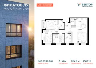 Продается 3-комн. кв-ра площадью 105,8 кв.м на 2 этаже 12 этажного дома в ЖК "Филатов Луг" от Группа компаний Вектор. Расположение