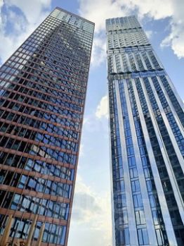 Данная квартира расположена на 40-м этаже корпуса "Кристалл" в новом доме премиум-класса и относится к категории редких предложений - остальные секции имеют эркеры, что сокращает полезную площадь.
