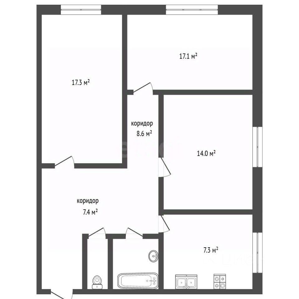 Места общего пользования нуждаются в небольших косметических работах, но потенциал квартиры превосходит незначительные вложения.