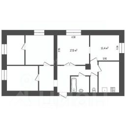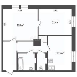 Площадь продаваемых комнат: 17.0 + 11.4 = 28.4 м².