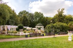 Фасады отделаны натуральным камнем, из окон открываются панорамные виды на парки и исторические особняки.