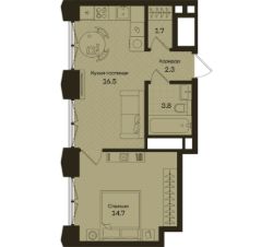 Продается 1-комнатная квартира площадью 39 м² в жилом комплексе Дом на Часовой