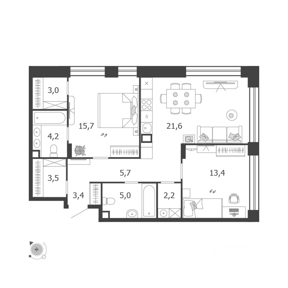 Продаётся 2-комнатная квартира в строящемся доме (Корпус 4.2 (3 очередь 4 этап)), срок сдачи: III-кв. 2026, общей площадью 77.7 кв.м., на 7 этаже. Это город в городе, который не подстраивается под старые рамки, а задает новую планку и стандарт жилого района в России.