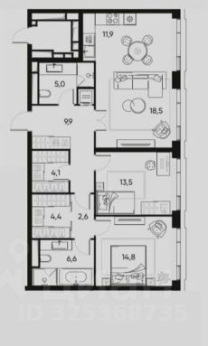 •Комната - 13,5 м2