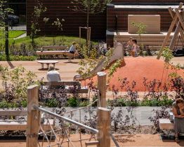 У подъездов будет два выхода: на улицу и во двор-парк. В наших дворах мы установим столы и лавочки со встроенными зарядными устройствами. Не нужно будет возвращаться домой, чтобы зарядить смартфон или ноутбук: можно весь день работать на свежем воздухе.