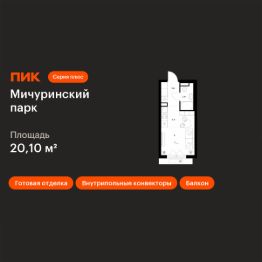 Продаётся квартира-студия площадью 20,1 кв.м на 2 этаже 23 этажного дома (Корпус 4.6, Секция 2) проекта ПИК Мичуринский парк. Светлый просторный подъезд на уровне земли, функциональная планировка, большие окна, c отделкой.