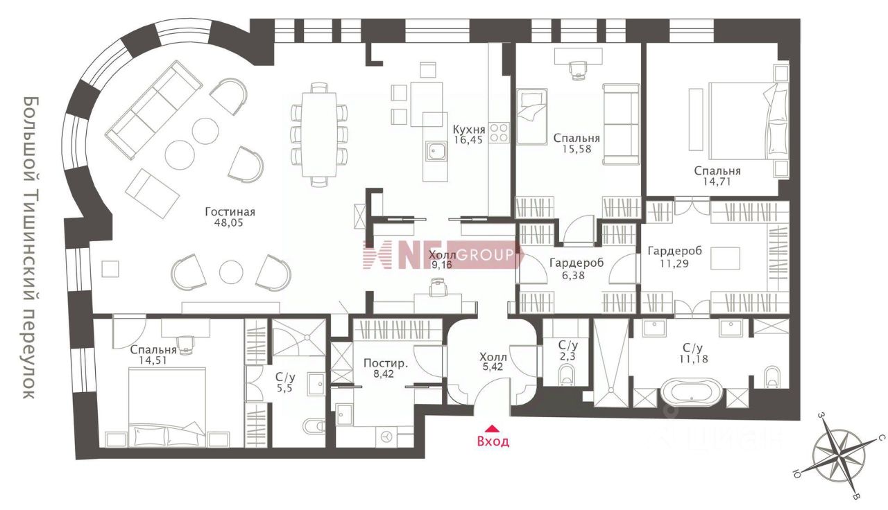 Лот: 99185. В продаже квартира свободной планировки в камерном клубном доме Fantastic House, расположенном в одном из самых уютных уголков Пресни, на Малой Грузинской.