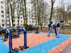 Во дворе прогулочные зоны, новые детский и спортивные площадки, хоккейная коробка и пр.
