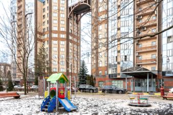 • Декоративное освещение, клумбы, детская площадка, зона для выгула собак во дворе — Оборудованы игровые и спортивные площадки, тенистые зоны отдыха, проложена дорожка для бега или неспешных прогулок.