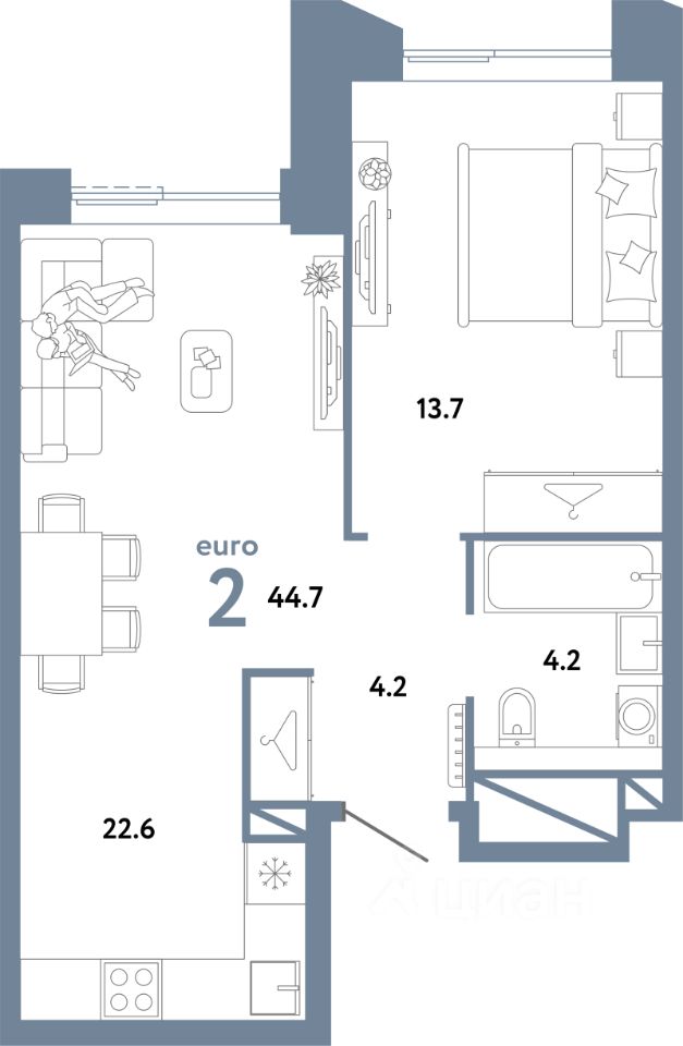 44,7 м²