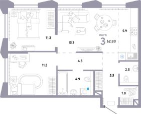 Продаётся 3-комнатная квартира в строящемся доме (Дом 1), срок сдачи: II-кв. 2026, общей площадью 62.8 кв.м., на 30 этаже. Многоэтажные жилые дома с объектами инфраструктуры, расположенные по адресу: г. Москва, внутригородское муниципальное образование Очаково - Матвеевское, ул. Озерная, вл. 42.